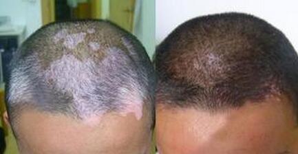 在病房里,陈先生指着额头说:“治疗到30天左右,这个部位就发生变化了,小的地方(发际线附近的白斑)没有了,大的地方(额头左侧一块近似圆形的白斑)逐步逐步地在缩小,所以感觉效果比较好。”现在,治疗效果实实在在就在眼前,马医生的疗效预言果然得到了应验,这令陈先生暗自庆幸得遇医生。