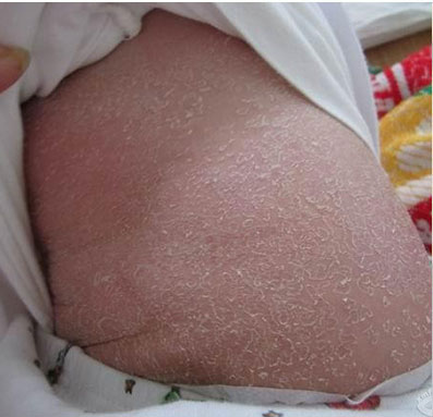 鱼鳞病主要表现为皮肤干燥、四肢伸侧或躯干部皮肤干燥、粗糙,伴有菱形或多角形鳞屑,外观如鱼鳞状或蛇皮状,通常伴有鱼鳞状脱屑。大部分患者为寒冷干燥季节加重,温暖潮湿季节缓解。易