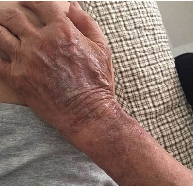 常因急性、亚急性湿疹反作不愈转为慢性湿疹;亦可开始不明显,因经常搔抓、摩擦或其他刺激,以致发病开始时即为慢性湿疹。其表现为患处皮肤浸润肥厚,表面粗糙,呈暗红色或伴色素沉着,皮损多为局限性斑块。