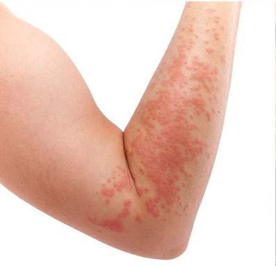 瘙痒、丘疹、水疱、风疹块、灼热、鳞屑