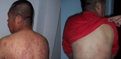 王硕跟来到太原肤康中医皮肤病医院的时候病情已经比较严重,医生经过检测诊断为:红皮型银屑病。红皮性银屑病是属于严重型银屑病,可致残,红皮型银屑病均为误诊和误治造成,一般情况下由于治疗过程中过多的应用激素和激素类药物导致。王硕跟十来年反反复复的病情估计是治疗过程中应用了过多的激素类药物。