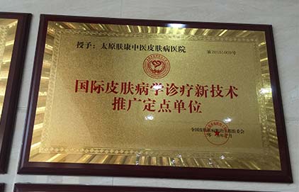 2015年,太原肤康受邀参加皮肤病诊疗新技术推广大会暨皮肤疑难病公益防治工程启动仪式,与及皮肤学科医生、学者交流经验,并被组委会授予新技术推广定点机构与皮肤病公益防治定点专科皮肤病医院。