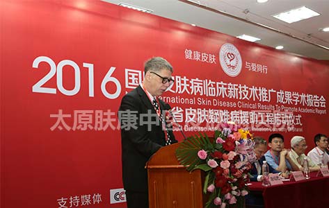 首都医科大学同仁医院刘文斌博士、北京大学人民医院尹东辉教授、皮肤外科协会保罗?帕克特、加拿大皮肤病科医师协会约瑟夫?布莱辛,山西省著名医生、享受国务院政府津贴医生、太原肤康中医皮肤病医院李文海院长、及来自各地百余名皮肤科专业医生共同分享了他们在皮肤病临床治疗中的较新皮肤病科研成果,对国内皮肤病诊疗新技术发展起到了强有力的推动、促进作用。
