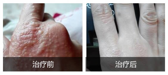 治疗后:手上的红色丘疹都消失了,恢复了健康的状态