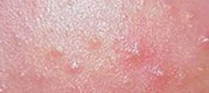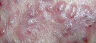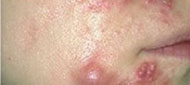 类型:结节、囊肿型痘痘集中发于下额部以下位置,皮损处密布炎性丘疹、脓包、囊肿、结节。脓包破溃处有的结痂,有的渗出液结晶,有的留下痘印。