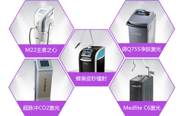肤康引进蜂巢皮秒、王者之心、调Q755、C6、CO2激光治疗仪、585脉冲激光治疗仪等全套仪器,定位定层直击斑源。